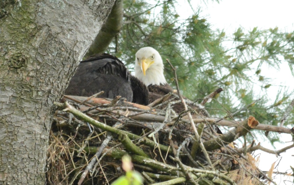 Eaglet at the local nest is now 9 weeks old. He is practicing to flap his wings and in a few weeks or so should be fledging. I missed the dad flying in with lunch because a car drove by me, and I looked away for a few seconds. I love watching the nest activity! They are such regal birds!